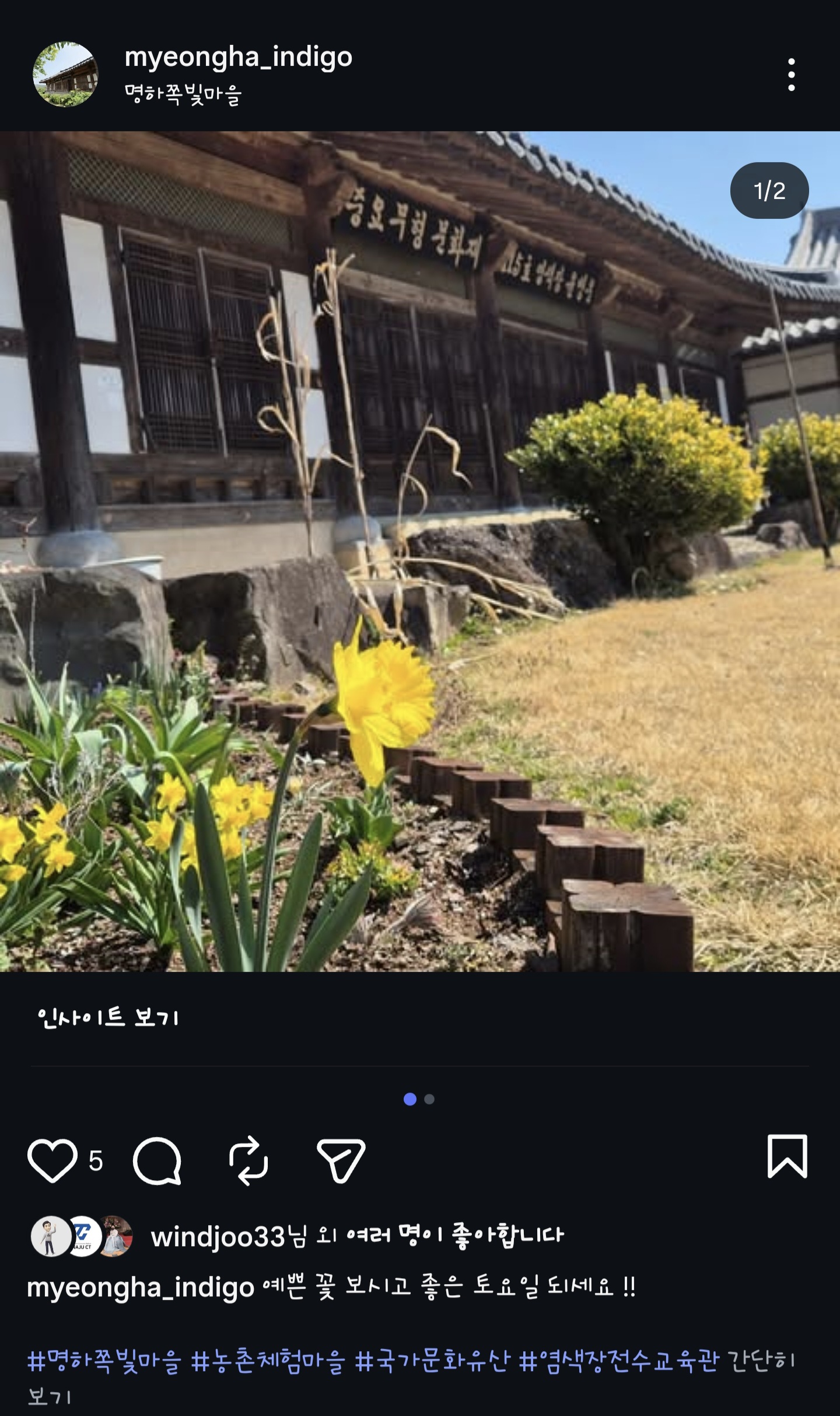 전형적인 배산임수의 아름다움을 갖춘 명하쪽빛마을